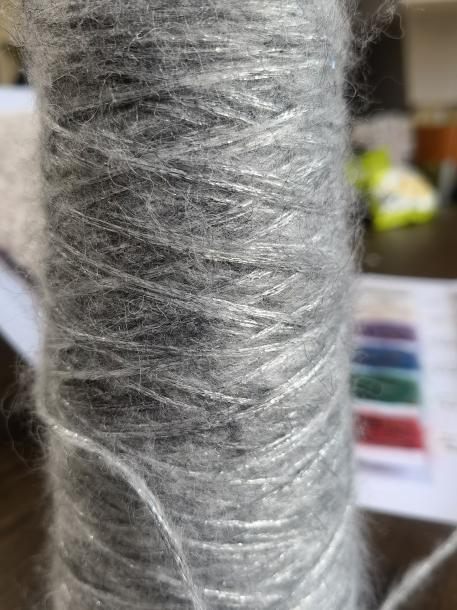 Picture 1 : The yarn has a delicate, fluffy effect and a unique metallic sheen because it uses silver threads as the main mesh structure and keeps the fibers spread out with sparse hairiness. This gives it a light but luxurious look.